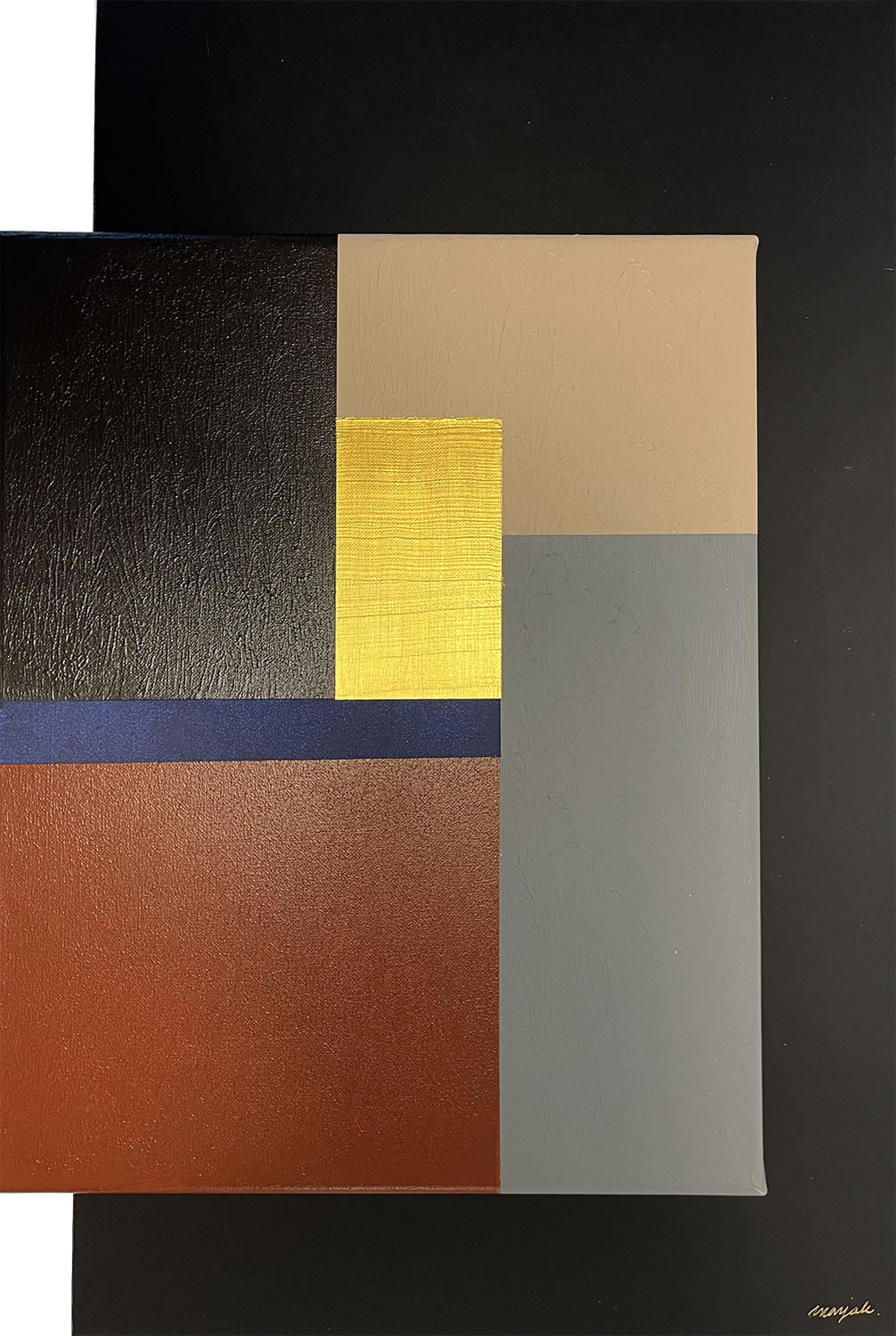 I år visar jag mina Akrylmålningar där jag arbetat med starka färger, raka linjer och geometriska former inspirerade av arkitektur och minimalism. Målningarna är ofta monterade på en svart bakgrundsskiva som förstärker kontraster, ljus och komposition.